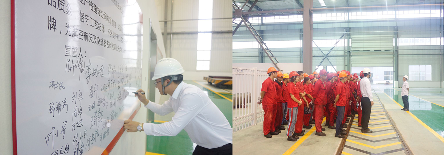 首先,管理者代表李姚君进行发言,在讲话中李总肯定了我公司质量管理工作所取得的成绩,并号召公司员工在生产工作中保持高度的质量意识,关注细节,严格控制生产过程,持续为客户提供高质量的锻件,通过“质量月”的活动把公司的质量控制能力和产品实物质量提升到一个新的水平。接着,质量部部长带领全员进行宣誓,要遵守公司规章制度,切实履行质量职责,恪守工艺纪律,为航空航天及高端装备制造事业进步发展竭尽全力。最后,全体员工都在宣誓板上签下了自己的名字,保证在今后的工作中以“一次把事情做好”为目标,严格履行员工质量职责。