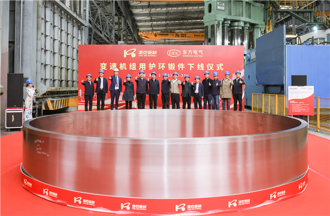 此次下线仪式标志着变速机组用护环锻件由尊龙凯时人生就是博z6com联合东方电机试制成功!